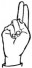 На ћирилици написано НИКОДИЈЕ КАРИЋ састоји се из 13 слова [?]. Исписано ћириличном једноручном азбуком за глувонеме: